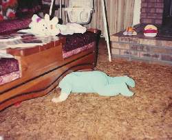 ~ "Can someone help me out of here! I need my diaper changed now!"  Me
