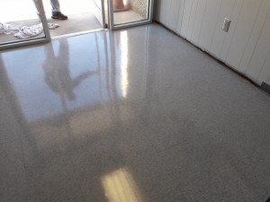 Removing and reapplying wax to VCT flooring leaves them looking glossy, clean, and protected from wear and tear.