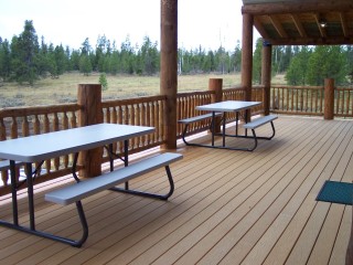 the 12 foot deck and room for more picnic tables and chairs.